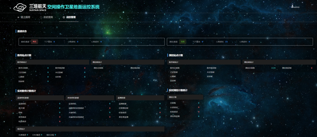 卫星地面运控系统,主要功能包括卫星状态监视、卫星任务规划、测站资源申请、卫星业务数据收发、卫星遥测遥控、在轨任务场景仿真等功能。系统基于BS软件架构,适用于各类卫星的业务运控需求。